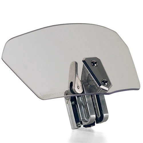 Spoiler universale fumé da montare sui cupolini / parabrezza; il sistema di ancoraggio in alluminio permette di regolare l’altezza e l’inclinazione dello stesso.