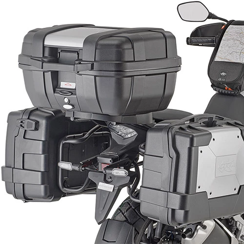 Portavaligie laterale specifico KL ONE-FIT configurato per valigie MONOKEY® CAM-SIDE Tubolare 18 mm di diametro / è possibile montarlo senza l’attacco posteriore 1121KZ acquistando il 1121KITK.